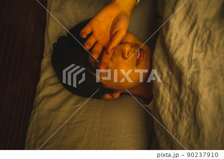 女性がベッドでうなされているイラスト