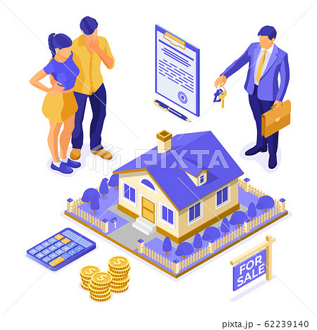 Real estate broker agent presenting to customer to decision making sign insurance form agreement, buy and sell home model, concerning mortgage loan offer