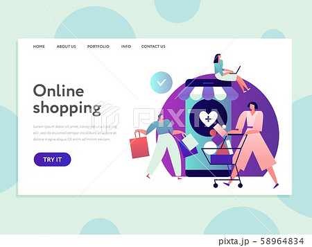 Online shopping landing. Internet purchasing and easy delivery app. E-commerce and secure