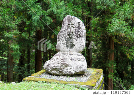 木曽路の出入り口 中山道贄川宿の風景 店前の石像