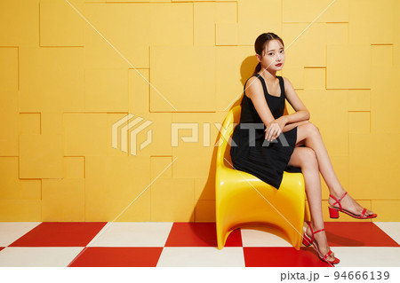 黒いワンピースを着た若い女性のシックなファッションポートレート