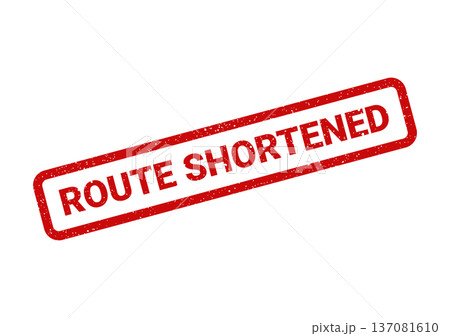 A distressed red rectangular rubber stamp showing an updated status that a route has been shortened