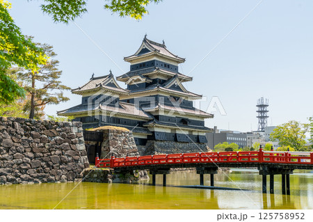 松本城と赤い橋