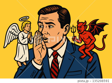 Man torn between angel and devil advice raster