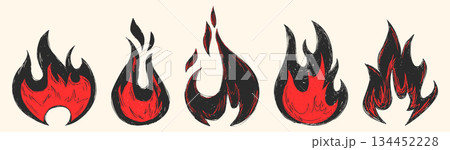 Hand drawn doodle fire icons set