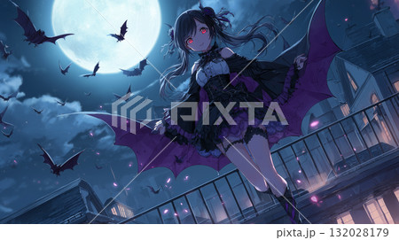 満月の夜に微笑む吸血鬼の少女 翼を広げて舞う幻想的な瞬間