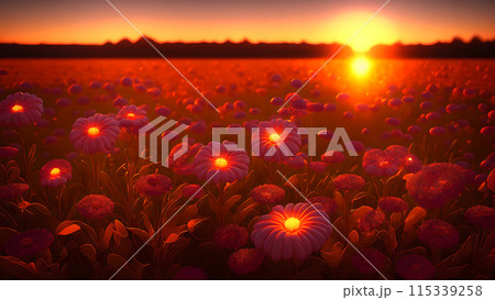 Sunset Field flower background 3d wallpaper