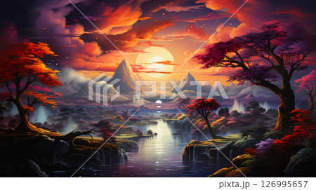 Stunning sunset landscape panorama vibrant colors scenic horizon