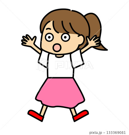 驚いた表情で両手を広げるかわいい女の子のキャラクター