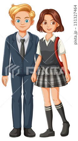 Smiling Schoolboy and Schoolgirl in Uniform Standing Together