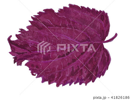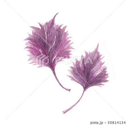 水彩で描いた赤紫蘇 のイラスト 白バック 透過背景