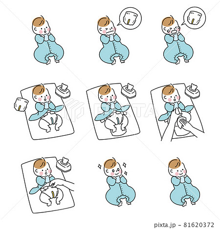 オムツを替えてもらう赤ちゃんのイラスト(男の子)