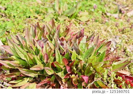 田んぼのあぜ道を覆うスイバの赤みを帯びた花