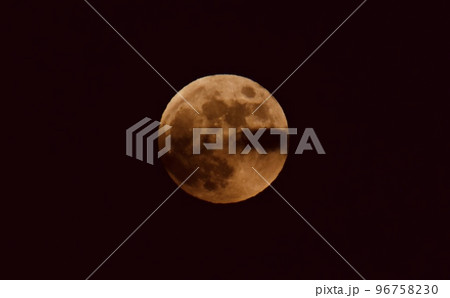 霞みがかかった赤みを帯びた満月ブラッドムーン