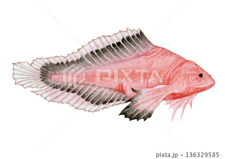 ハゴロモコンニャクウオ 深海魚 深海生物 水彩 イラスト