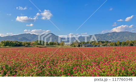 秋の国営ひたち海浜公園 赤く紅葉したコキアとそばの花 茨城県ひたちなか市