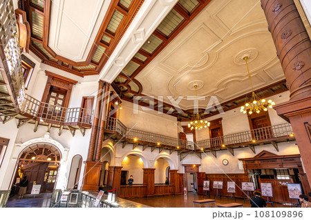 岩手銀行赤レンガ館 岩手銀行旧本店本館 内観 吹き抜けと華麗な装飾のエントランスホール