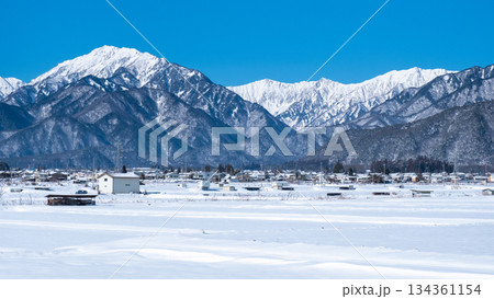 信州長野 大岡アルプス展望公園からの北アルプスの眺望(春)