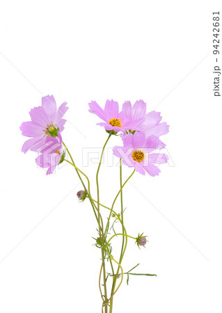 Pink Cosmos bipinnatus flower isolated on white background. Ornamental garden plant Cosmos bipinnatus close-up macro