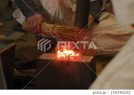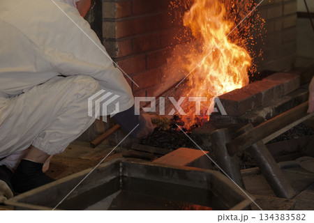 伝統技術で赤熱した鉄を鍛える日本の鍛冶職人