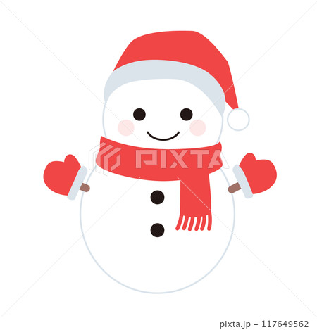 かわいいサンタクロースの顔、手袋と雪の結晶のベクターイラスト_クリスマスと冬の素材