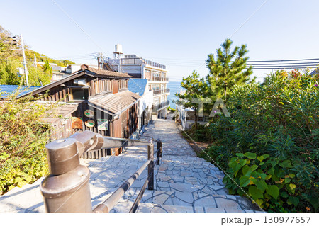 きらきら坂のタイル模様がかわいい階段を見上げる風景 兵庫県赤穂市御崎