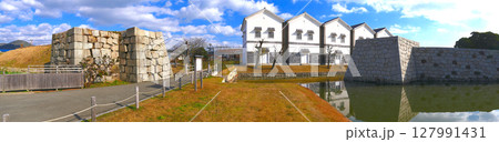 赤穂城の堀に沿って並ぶ米蔵風の建物