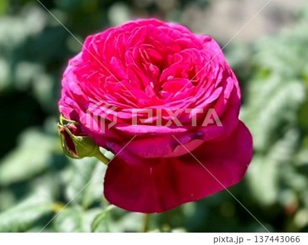 満開のロゼット咲きのバラ・幸福感と生命力溢れるローズガーデンの自然風景写真