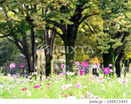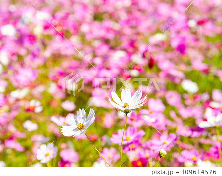 秋の景色 可憐でかわいいカラフルなコスモス