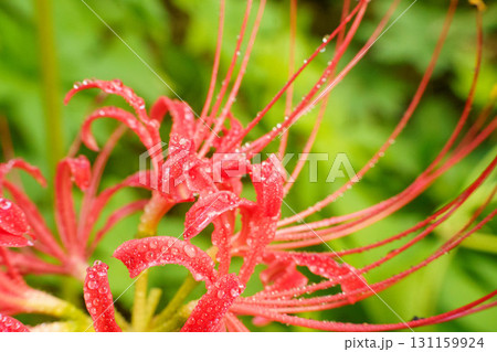 雨に濡れた真っ赤に色づいた彼岸花