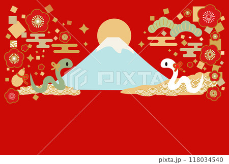 ヘビのイラストの年賀状テンプレート 横長