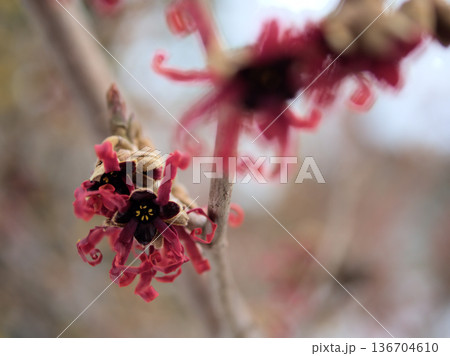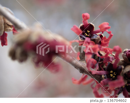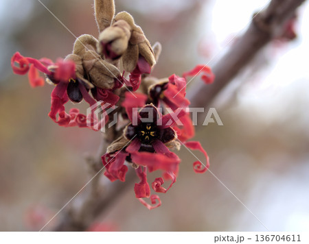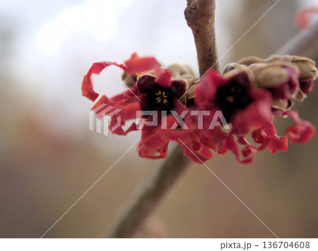 2月に咲いたハマメリス・インターメディア「ダイアン」の赤い花