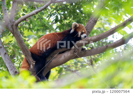 木の上で休んでいるレッサーパンダ