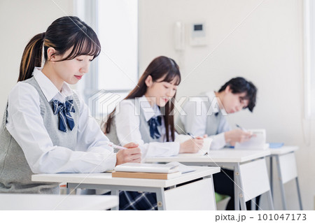 集中してノートを取る高校生