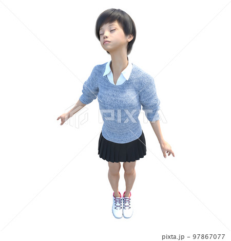 ポーズする女子高生 perming3DCG イラスト素材