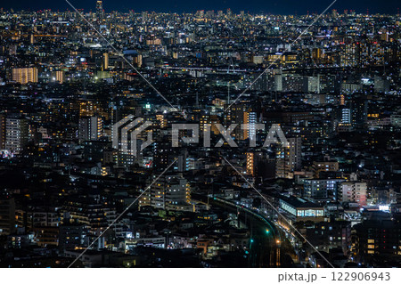 東京スカイツリーから望む:隅田川貨物ターミナル駅と南千住の街並み町並み