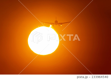 飛行機と夕陽
