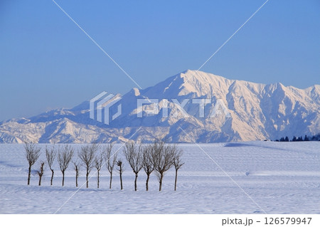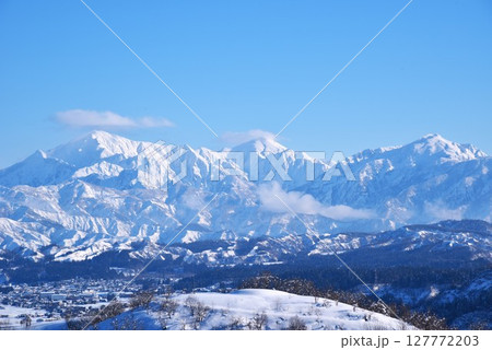 新潟県長岡市越後川口里山からの越後三山雪景色
