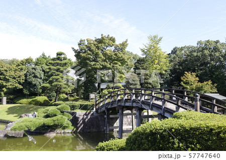 こしがや能楽堂の日本庭園、花田苑。太鼓橋のある風景(9月)埼玉県越谷市