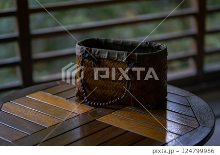 和の風情漂う旅館の客室に置かれた手作りの湯かご