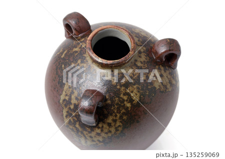 銅壺を手に取って確認する和服の男性 鑑定士 古物商 収集家 イメージ
