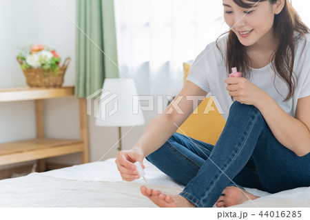 足の爪を切る女性