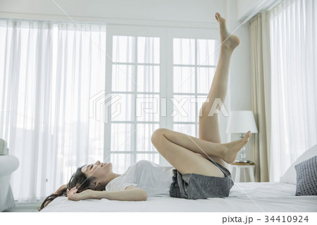 足持ち上げる 足を上げる 若い女性