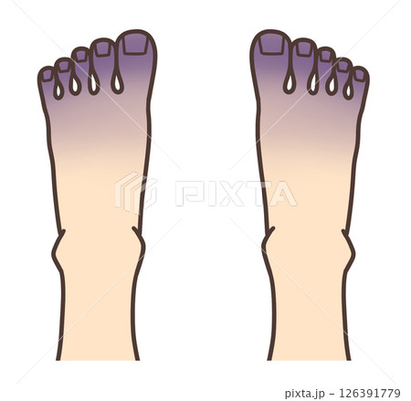 疾患の兆候:末梢性チアノーゼによる足先の紫色の変色