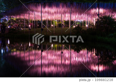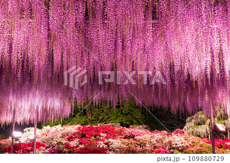 あしかがフラワーパークの春 むらさき藤のスクリーンライトアップ