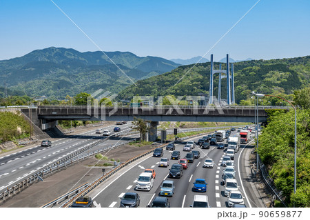 (静岡県)東名高速道路 足柄付近 (画面後方が東京方面)