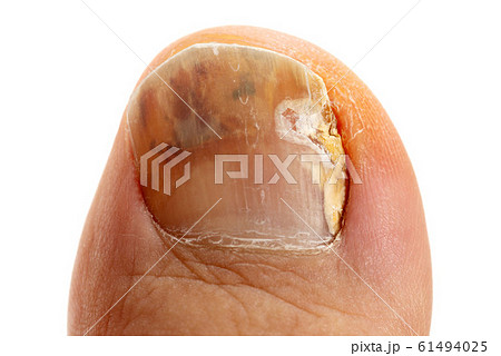 白背景の男の親指の爪の水虫