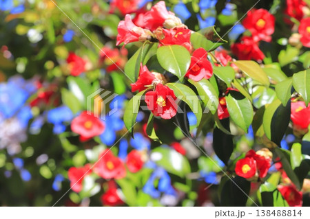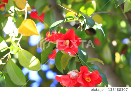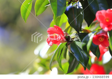 満開の赤い椿(ツバキ)