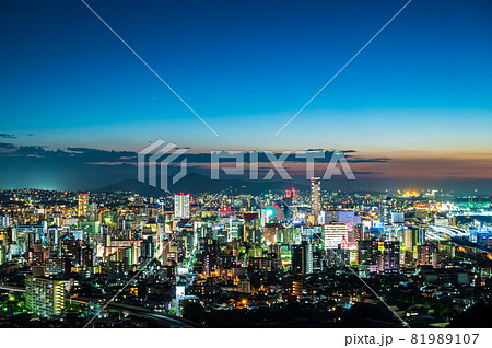 足立山展望台から眺める夕暮れの北九州都市景観