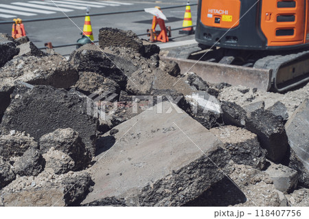 工事現場とアスファルト舗装の撤去